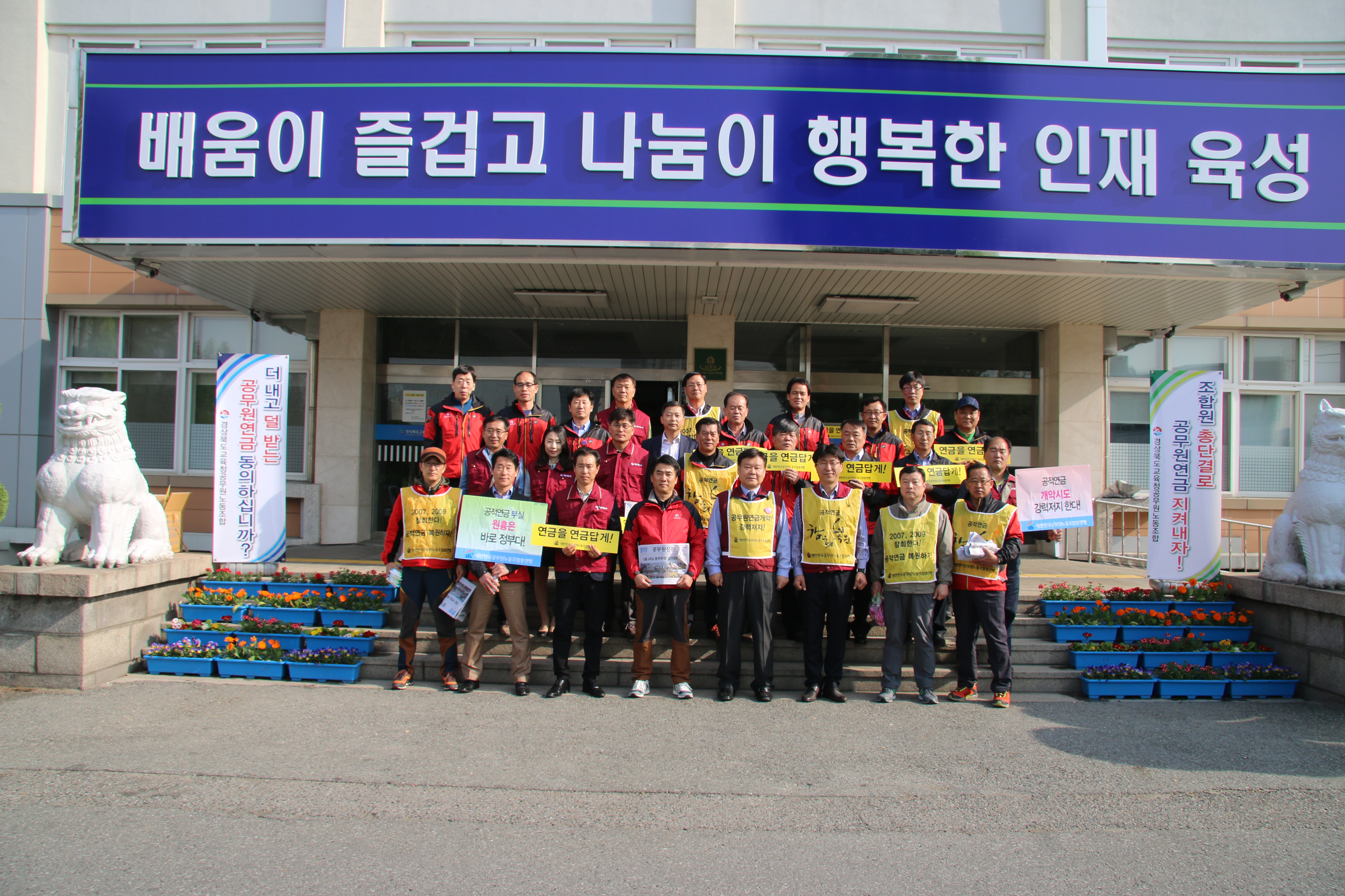 °æ»óºÏµµ±³À°Ã»°ø¹«¿ø³ëµ¿Á¶ÇÕ(À§¿øÀå ±èÁ¾±â, ÀÌÇÏ °æºÏ±³À°³ëÁ¶) ÀÓ¿ø 30¿©¸íÀº 2015.4.23.(¸ñ) 07:30ºÎÅÍ °æ»óºÏµµ±³À°Ã» º»Ã»¿¡¼ ¡®°øÀû¿¬±Ý °È¡¯ È«º¸ÀüÀ» ½Ç½ÃÇÏ¿´´Ù.