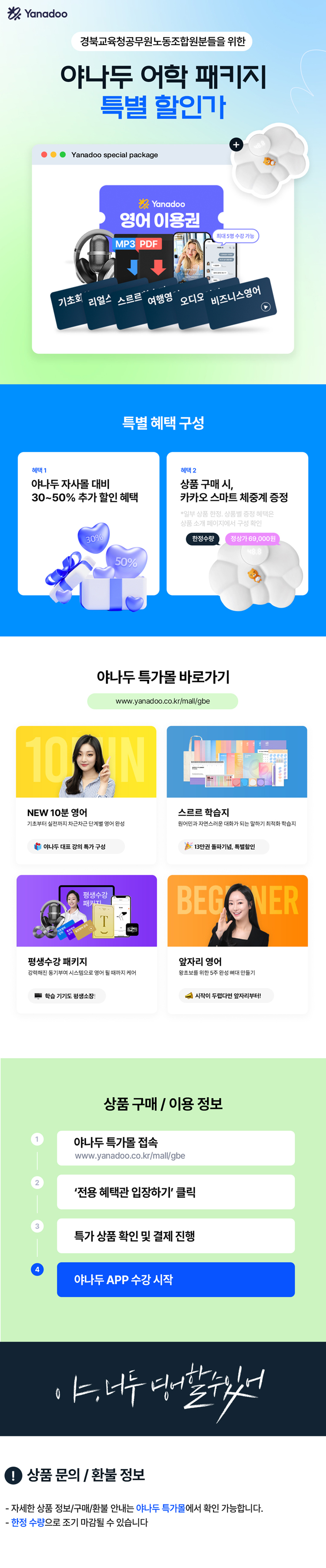 [±¸¸Å¹æ¹ý] ÆÇ¸Å±â°£ : »ó½Ã ±¸¸Å¸µÅ©url : https://www.yanadoo.co.kr/mall/gbe/list [°ÀÇÆ¯Â¡] ÇÏ·ç10ºÐ ¾ß³ªµÎ ¾îÇÐ¾Û ÇÁ·Î±×·¥Àº ¹Ù»Û Á÷Àå»ýȰ¼Ó¿¡ ÇнÀ½Ã°£ ºÎ´ã¾øÀÌ ²ÙÁØÈ÷ ÇнÀÇÒ ¼ö ÀÖ´Â ¾îÇÐ ÇÁ·Î±×·¥À̸ç, ¾ß³ªµÎ ¾Û AI¿ø¾î¹ÎÅå ¼ºñ½º¸¦ ÅëÇØ »ó½Ã ÇÁ¸®ÅäÅ· ȯ°æÀ» Á¦°øµå¸³´Ï´Ù. [ÇýÅó»¿ë] °³ÀΰáÁ¦ ÇÒÀÎ ÇýÅà (»óǰº° ȨÆäÀÌÁö°¡ ´ëºñ 30~50% ÇÒÀÎ) Ãß°¡ÇýÅà : ±¸¸ÅÀںе鲲 īī¿À½º¸¶Æ®Ã¼Áß°è Ãß°¡ ÁõÁ¤ (ÀϺΠ»óǰ ÇÑÁ¤. »óǰº° ÁõÁ¤ ±¸¼º »óÀÌ) [ÁÖ¿ä»óǰ] - ¾ß³ªµÎ ¿µ¾î ¿ÃÀοø ÆÐŰÁö, ½º¸£¸£ÇнÀÁö ÆÐŰÁö - ÀϺ»¾î, Áß±¹¾î, ÅäÀÍÆÐŰÁö - Àڱⰳ¹ß ÆÐŰÁö µî [¼ö°¹æ¹ý] - ¾ß³ªµÎ´Â ¼ö°»ýÀÇ ÇнÀÀ» À§ÇØ AIÆ®·¹ÀÌ´× ±â´ÉÀ» Á¦°øÇØ "¾ß³ªµÎ APP"¿¡¼ ¼ö°À» ±ÇÀåÇÕ´Ï´Ù. ¾Û ´Ù¿î·Îµå ¸µÅ© : ¢¹ ¾Èµå·ÎÀ̵å : https://bit.ly/37YNc7b ¢¹ ¾ÆÀÌÆù : https://apple.co/3rytOWB [°áÁ¦Áõºù¼·ù È®Àιæ¹ý] - °áÁ¦Áõºù¼·ù Ãâ·Â¹æ¹ý 1. ȨÆäÀÌÁö °áÁ¦ ½Ã : ȨÆäÀÌÁö ·Î±×ÀÎ- ¸¶ÀÌÆäÀÌÁö- ÁÖ¹®/¹è¼ÛÈ®ÀÎ-¿µ¼öÁõ Ŭ¸¯ 2. ³×À̹ö ÆäÀÌ °áÁ¦ : ±¸¸ÅóÀÎ ³×À̹ö ÆäÀÌ·Î È®ÀÎ [¾ß³ªµÎ ¼ºñ½º À̿빮ÀÇ] ¾ß³ªµÎ °í°´¼¾ÅÍ : 1600-0563 [ȯºÒ¾È³»] ¡Ø ȯºÒ°ü·Ã¹®ÀÇ : [email protected] |