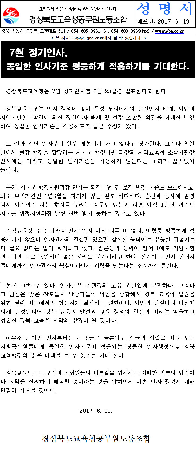 [¼º¸í¼] 7¿ù Á¤±âÀλç, µ¿ÀÏÇÑ Àλç±âÁØ ÆòµîÇÏ°Ô Àû¿ëÇϱ⸦ ±â´ëÇÑ´Ù.